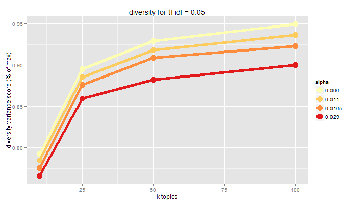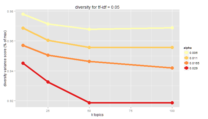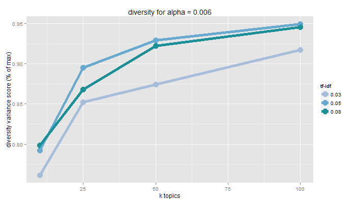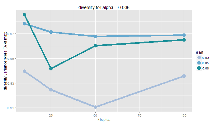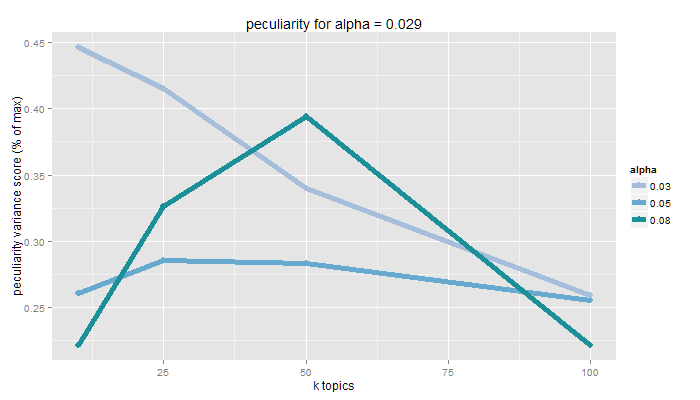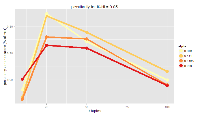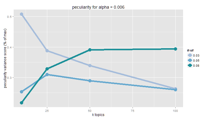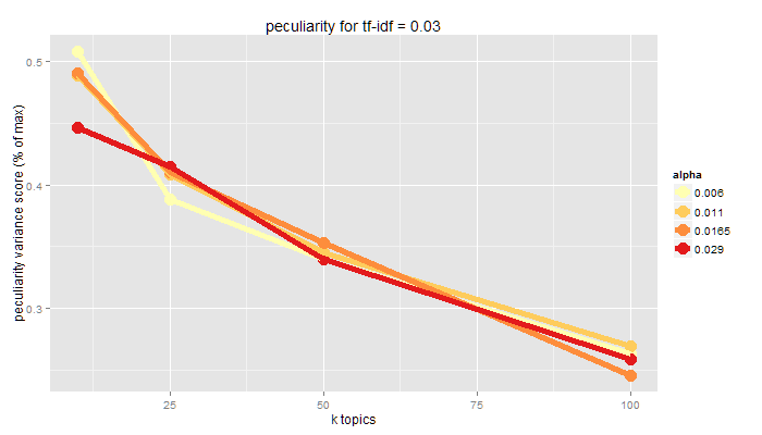 | Peculiarity | low k: low alpha, high k: high tf-idf | low |